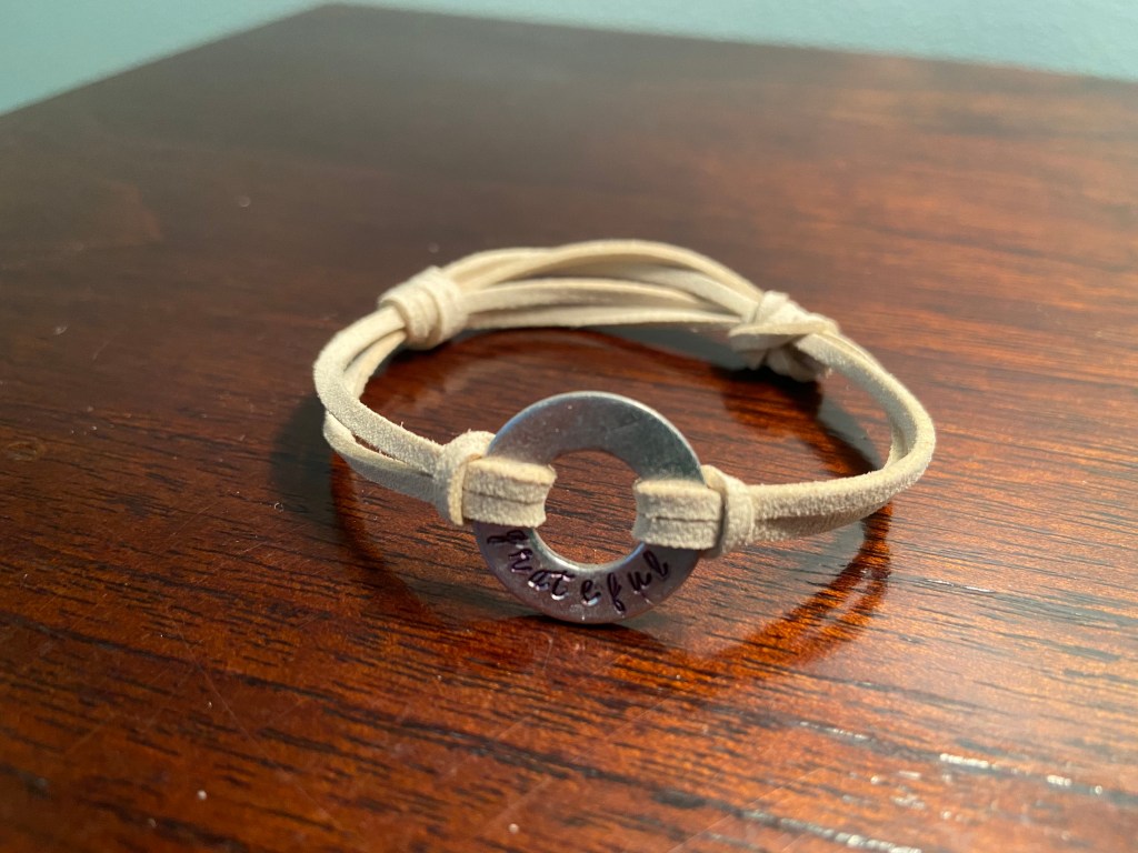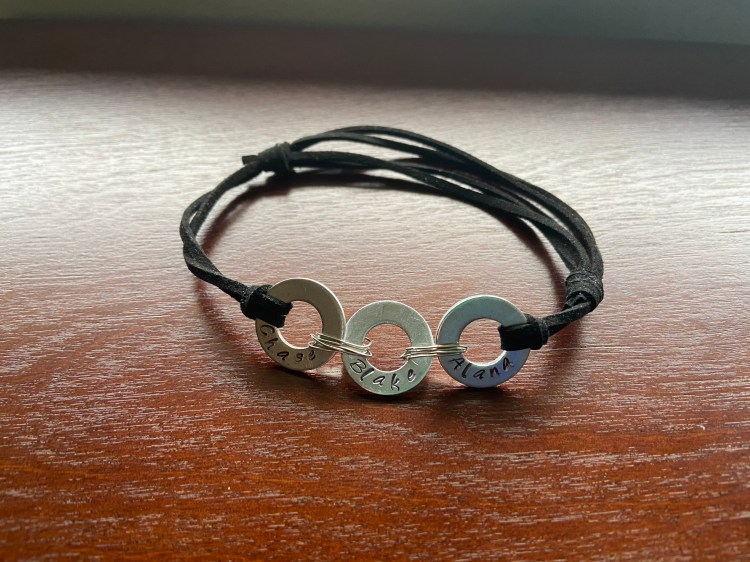 Metal stamped bracelets with a variety of phrases and options available.
